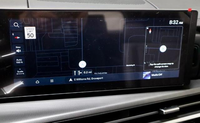 - Radio: AM/FM/HD Display Audio -inc: 6 speakers, 12.3" wide touchscreen display, Apple CarPlay, Android Auto, Bluetooth® hands-free w/wireless audio streaming, dynamic voice recognition, USB connectivity, SiriusXM, Blue Link+ connected car system, over-the-air updating capability, navigation system including traffic flow w/incident data via HD Radio (HERE) and rear seat quiet mode