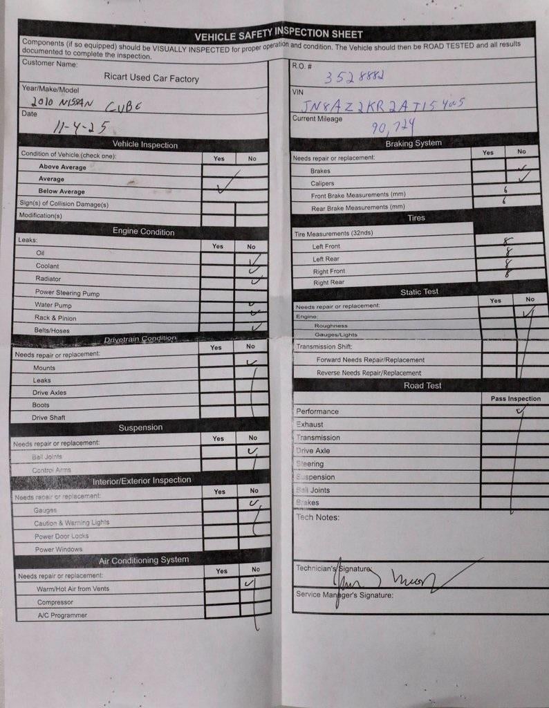 This 2010 Nissan Cube 1.8 S stands out with its distinctive design and practical, city-friendly footprint, making it a fun and functional choice for everyday driving. Powered by a 1.8L 4-cylinder DOHC 16-valve engine, it delivers reliable performance with excellent efficiency for commuting and errands. The uniquely styled interior emphasizes space and comfort, offering a surprisingly roomy cabin with versatile seating and cargo flexibility. Find it today at Ricart Automotive Used Car Factory.