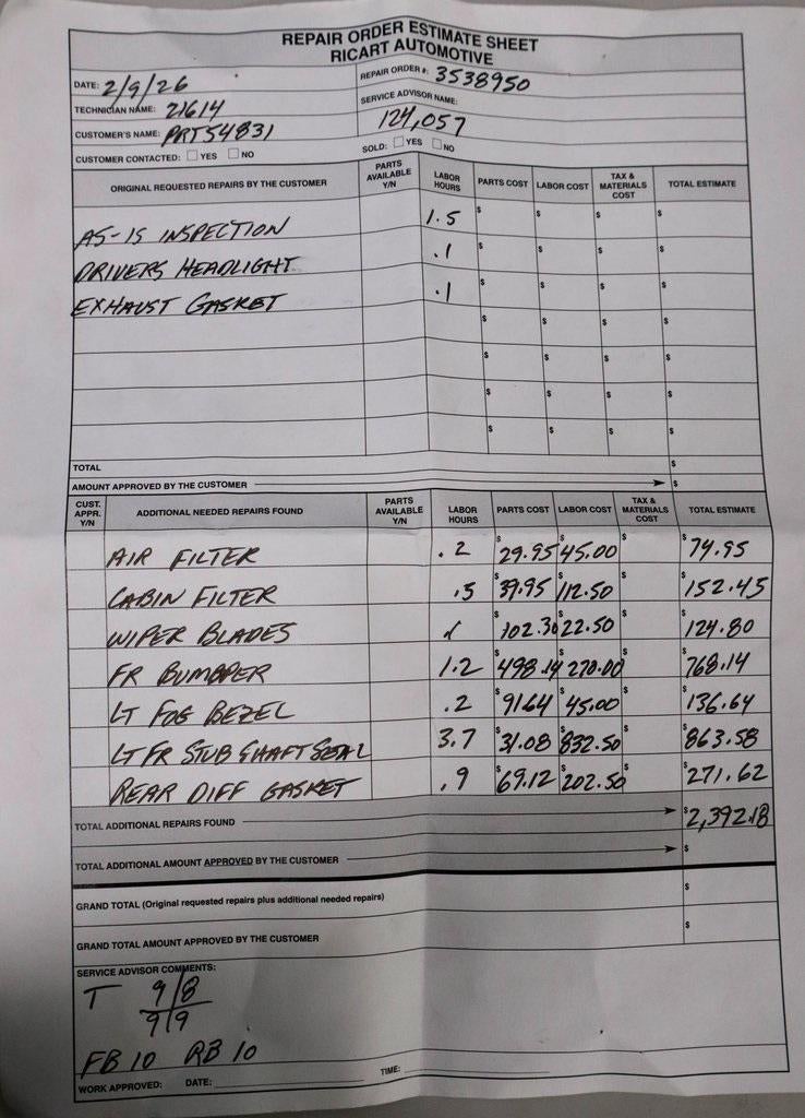 | Vehicle inspection | 173-point inspection | 117-point inspection |