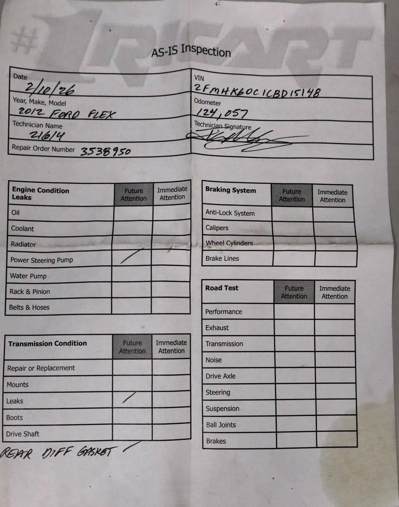This 2012 Ford Flex Limited AWD delivers distinctive full-size crossover styling with a spacious, comfort-focused interior and confident all-weather capability. Powered by a Duratec® 3.5L V6 engine paired with a smooth automatic transmission and all-wheel drive, it offers composed performance well suited for daily driving and highway travel. The interior is finished in Charcoal Black perforated leather and features a roomy, versatile layout designed to keep passengers comfortable on longer trips. Known for its unique design and refined ride quality, this Flex Limited is available now at Ricart Automotive Used Car Factory.