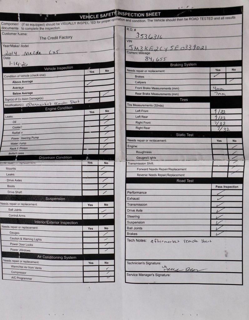 The 2014 Mazda CX-5 Touring delivers a well-balanced mix of efficiency, comfort, and everyday versatility in a sleek compact SUV design. Powered by a 2.5L SKYACTIV-G 4-cylinder engine paired with a 6-speed SKYACTIV-Drive automatic transmission with Sport Mode, it offers smooth, responsive performance for daily commuting and weekend travel. Inside, the cabin features Black cloth seating with sport-shaped front seats and a clean, driver-focused layout supported by intuitive audio and convenience features. Available now at Ricart Automotive Used Car Factory.