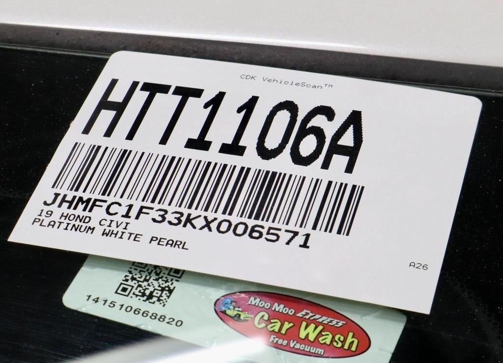 Platinum White 2019 Honda Civic EX 4D Sedan 1.5L I-4 DI DOHC Turbocharged 32/42 City/Highway MPG CVT FWD