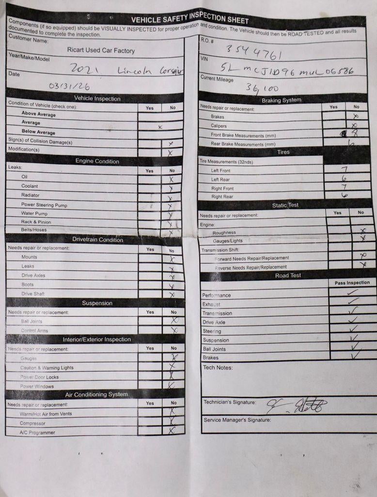 This 2021 Lincoln Corsair Standard AWD delivers refined luxury and modern performance, finished in Ceramic Pearl with a Lincoln Soft Touch Sandstone interior for a clean, upscale feel. Powered by a 2.0L turbocharged engine paired with an 8-speed automatic transmission, it offers smooth, responsive performance with confident all-wheel drive capability. Inside, the cabin is thoughtfully crafted with premium materials, voice-activated navigation, dual-zone climate control, power seating, and a quiet, comfortable ride. Equipped with Equipment Group 101A, Convenience Package, Elements Package, and 18" bright machined aluminum wheels with dark tarnish finish, this Corsair blends sophistication with everyday practicality. Available now at Ricart Automotive Used Car Factory.
