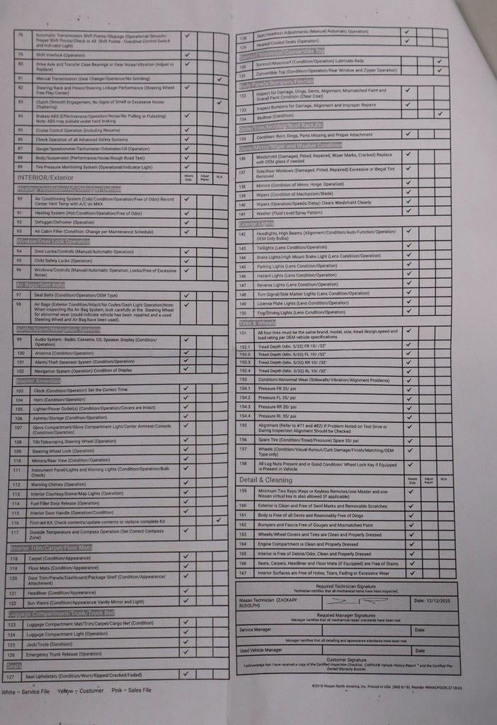 * 7 Year/100,000 Mile Limited Warranty, 24/7 Hour Roadside Assistance, Carfax Vehicle History Report, Plus 1 Year Pre-Paid Maintenance Included. Gas Powered Nissan Models Only.