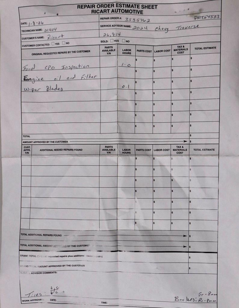 This 2024 Chevrolet Traverse RS FWD delivers bold three-row SUV styling with a sporty edge and family-ready versatility. Powered by a 2.5L turbocharged DOHC engine paired with an 8-speed automatic transmission, it offers smooth, confident performance for daily driving and road trips alike. The interior is finished in Jet Black leather-appointed seating and provides a refined, tech-forward cabin with spacious comfort across all rows, while the exterior stands out in Radiant Red Tintcoat for a striking presence. Athletic RS design cues and advanced safety features complete the package—available now at Ricart Automotive Used Car Factory.