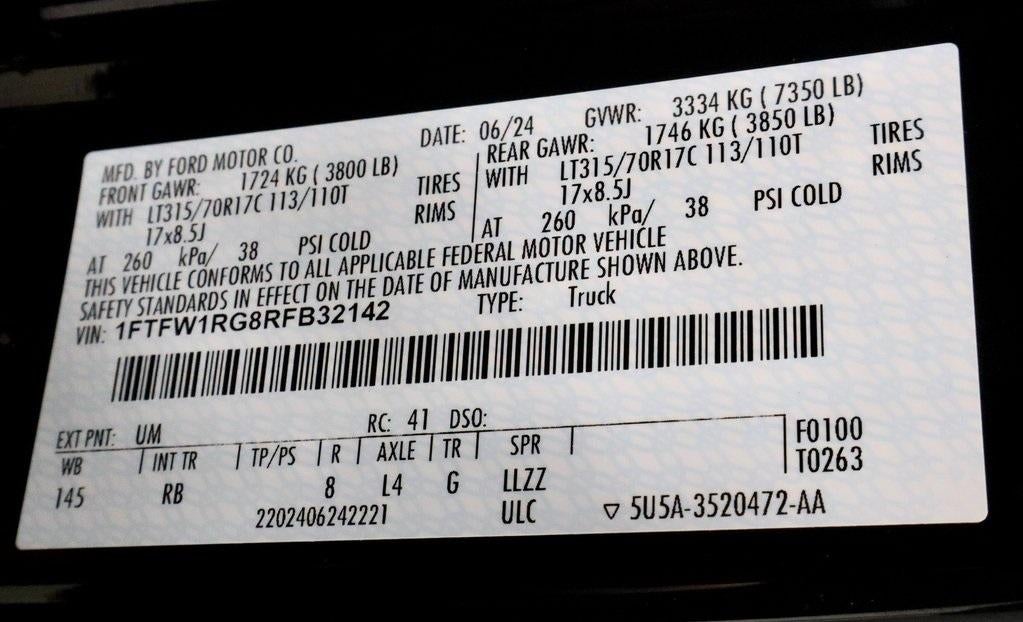 This 2024 Ford F-150 Raptor is engineered for high-output performance and off-road authority, powered by a 3.5L V6 EcoBoost engine paired with an automatic transmission for rapid response and confident control. Strength meets refinement through Equipment Group 801A, wrapping advanced technology and premium comfort in a Black leather bucket seat interior finished in Black Metallic. Capability and convenience are elevated with a Twin Panel Moonroof, Navigation System, and a ToughBed spray-in bedliner, delivering both open-air freedom and durable utility. Built to dominate trails and highways alike, this F-150 Raptor is ready to roll at Ricart Automotive Used Car Factory.