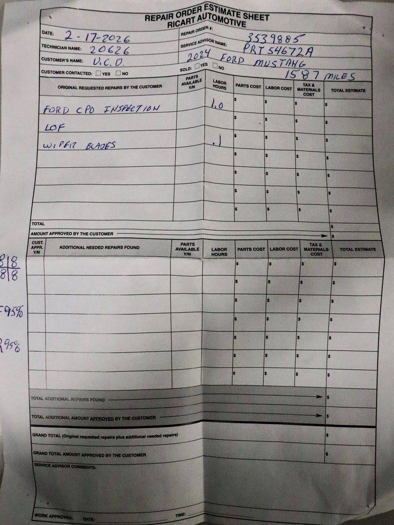 The 2024 Ford Mustang GT Premium delivers iconic American performance with bold styling and unmistakable presence, finished in Atlas Blue Metallic with a Black Onyx leather-trimmed interior. Powered by a 5.0L Ti-VCT V8 engine paired with a 10-speed automatic transmission, it channels exhilarating rear-wheel-drive performance enhanced by the GT Performance Package and selectable drive modes. Inside, you’ll find the Equipment Group 401A High Package, a 12.4" LCD digital cluster, SYNC® 4 with 13.2" center touchscreen, B&O Sound System by Bang & Olufsen®, heated and ventilated front seats, dual-zone electronic automatic temperature control, and wireless charging for a refined yet performance-focused cabin. Ford Co-Pilot360™ Assist+ with Adaptive Cruise Control and advanced driver-assist technologies adds confidence to every drive. Available now at Ricart Automotive Used Car Factory.